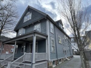Byggmeister started our first phase of work in 2021. Picking up where MassSave left off, we focused on improving the top and bottom of the building envelope. In the basement, we insulated the fieldstone foundation walls with spray foam and installed new windows. Their unusually high basement ceilings allowed us to also lay down foam board insulation and painted subfloor panels over the existing slab. On the top floor, we removed one unused chimney down to below the third floor and insulated the roofline from the exterior walls up to the vented attic cap.